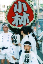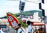(1)家名入り提灯を持って先導する人